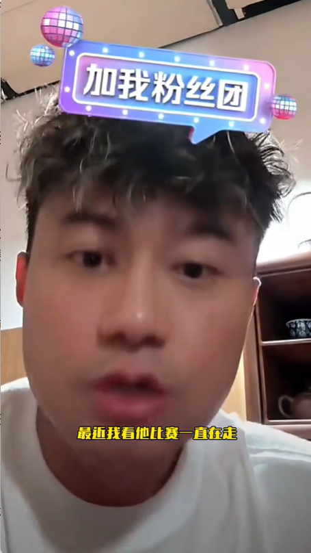 “最近我看他在比赛一直在走,去年是一直摇到赢球的,一直赢赢赢。那大概是去年痔疮刚发有一点痒,他一直摇。现在一直走,痔疮严重了,坐不下去了,只能一直走。”